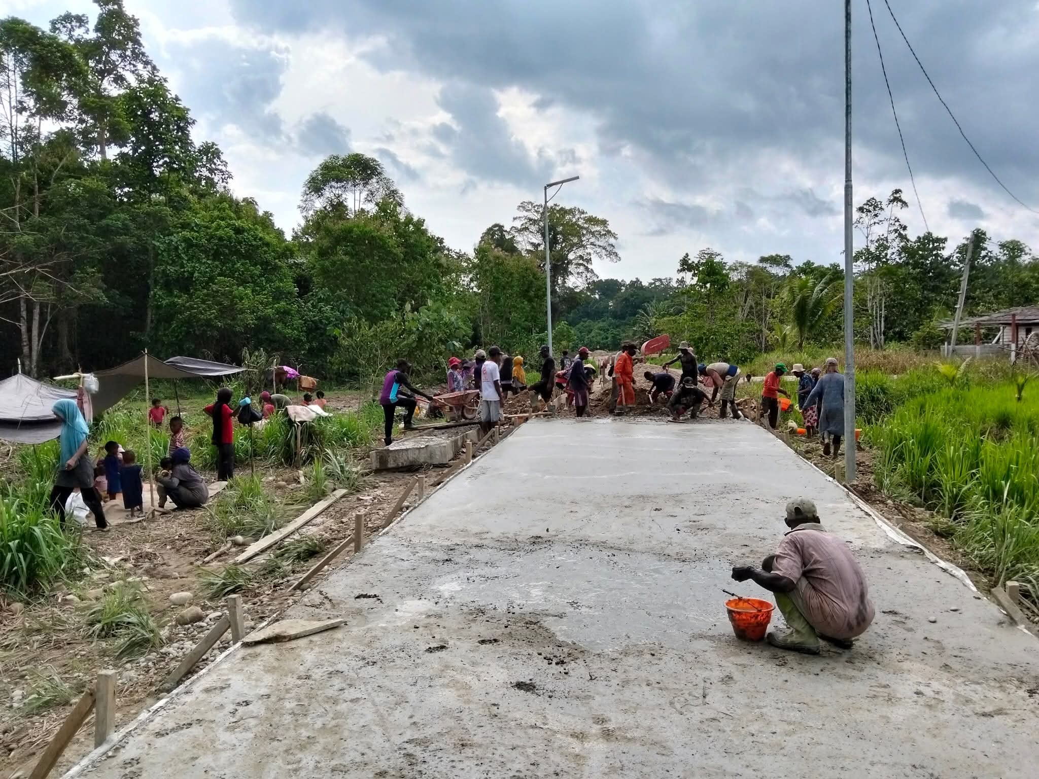 Nilai luhur gotong royong kembali terlihat di Distrik Yakora, Kabupaten Teluk Bintuni, pada Rabu (18/11). Di bawah terik matahari, puluhan warga—yang didominasi oleh para ibu-ibu, bahkan beberapa di antaranya telah lanjut usia—tetap hadir dengan semangat tinggi untuk melakukan pekerjaan pengecoran jalan di wilayah Sebyar. Suasana kebersamaan tampak begitu kuat. Meski keringat mengucur dan panas menyengat, warga tetap kompak dan bergembira dalam menjalankan pekerjaan.